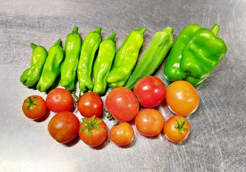 【収穫】シシトウ、オクラ、ピーマン、中玉トマト、ミニトマト